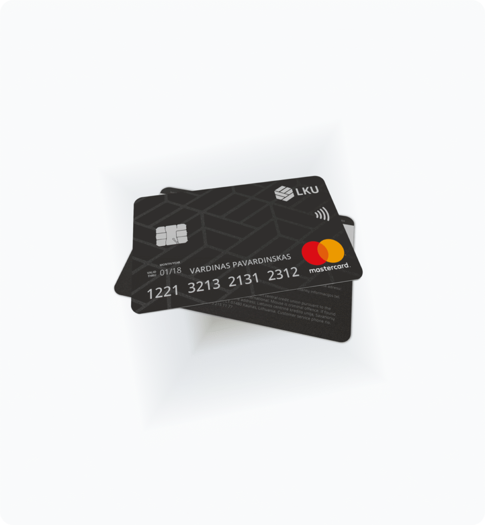Kredito unijos nario prašymu šeimos nariui ar kitam nurodytam asmeniui išduota LKU mokėjimo kortelė su teise ja naudojantis atlikti mokėjimo operacijas, išsiimti grynųjų pinigų iš bankomatų, atsiskaityti už prekes ar paslaugas prekybos bei paslaugų teikimo vietose ir atlikti kitus nario prašyme nurodytus veiksmus.